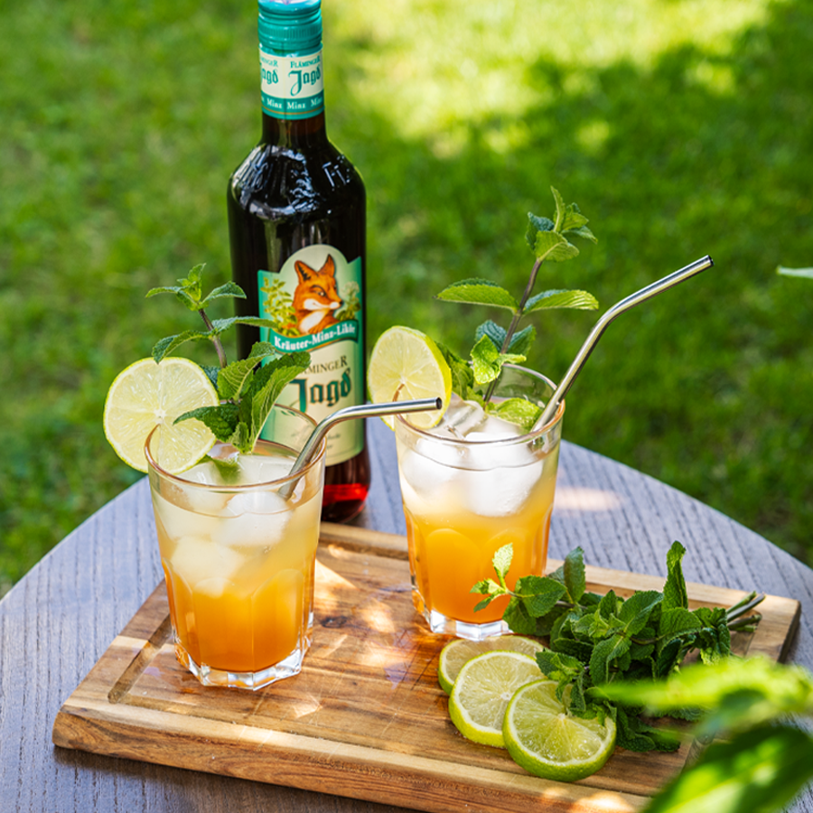 Ein Fuchs für das Weihnachtsmarktgefühl in den eigenen vier Wänden. Zur Vorbereitung Wasser aufkochen und Teebeutel wie angegeben ziehen lassen. Im Anschluss mit Zimt und Nelken, Orangenschale ein weiteres Mal sanft aufkochen. Zum guten Schluss einen Schuss Fläminger Jagd Kräuter-Likör dazugeben, umrühren – fertig ist der warme Fuchs für kalte Tage.